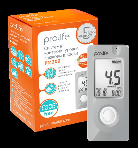 Бережный прокол, минимальная капля крови (0,75 мкл) — и через 5 секунд глюкометр Prolife PM 200 показывает уровень глюкозы в крови. Прибор выдаёт точный результат, который эквивалентен показателям, полученным в лабораторных условиях. Глюкометр сохраняет в памяти 500 результатов с датой и временем. Не требует предварительной кодировки.